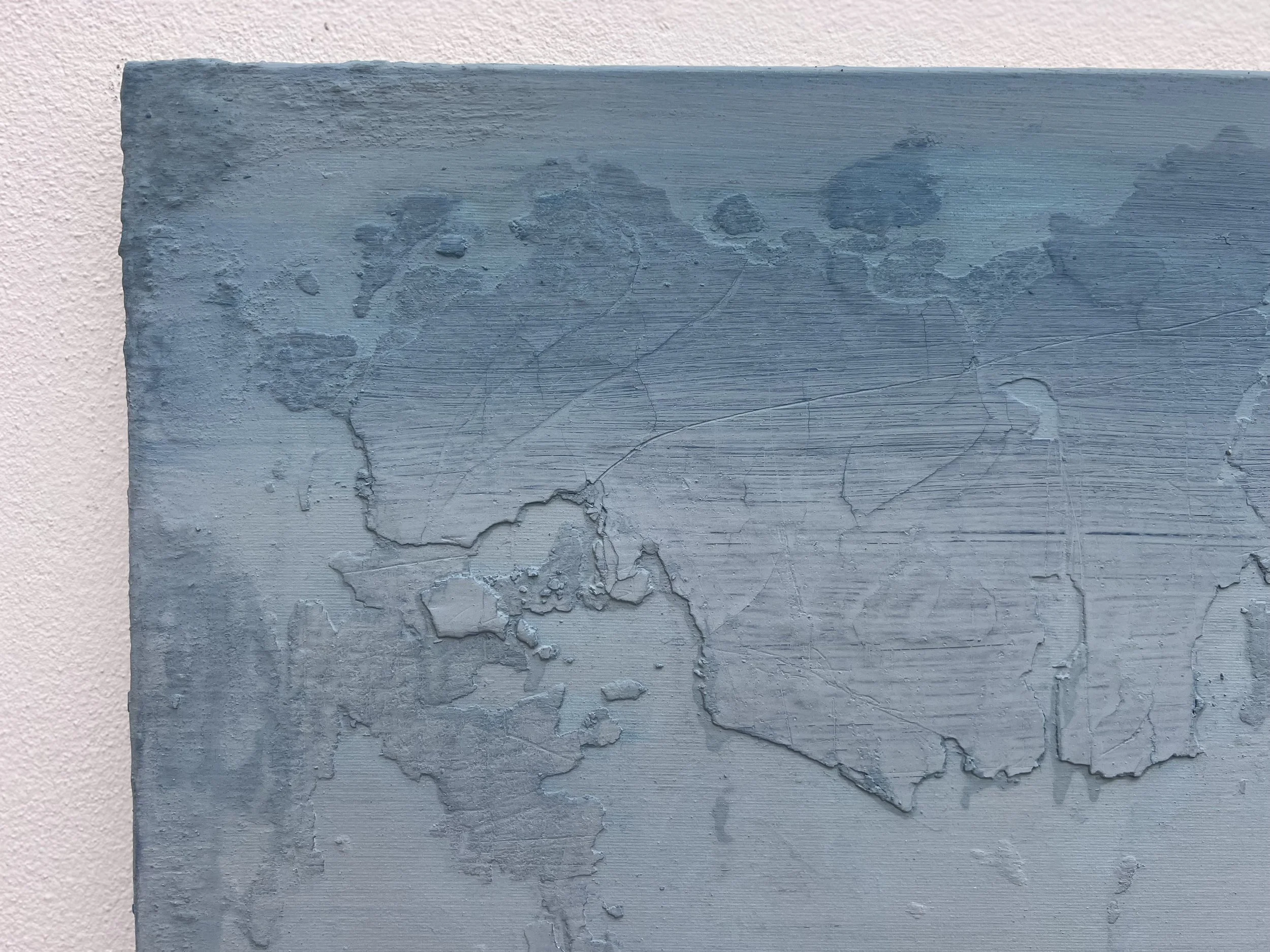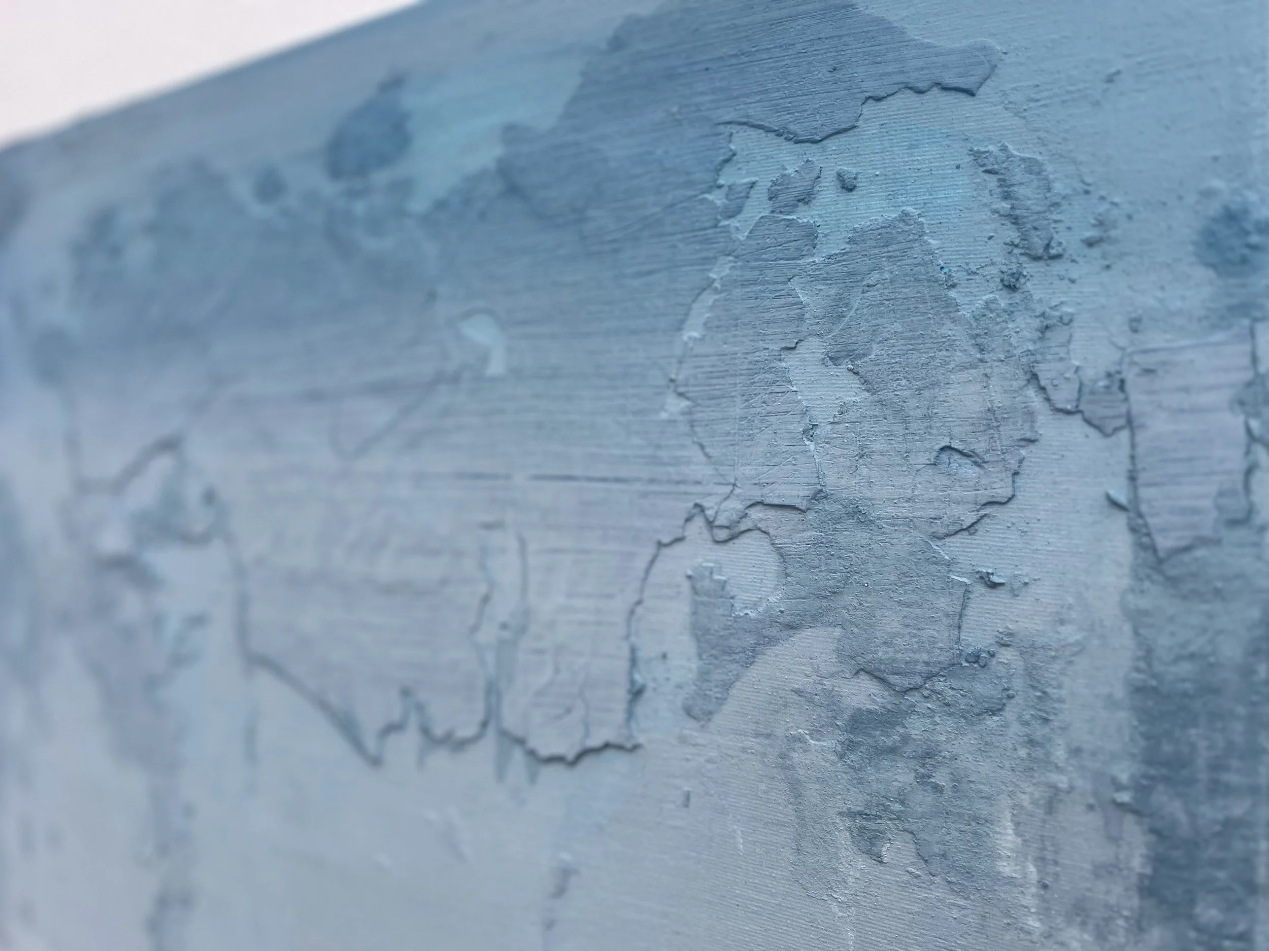 Echoes below. Layers of blue, clay and charcoal trace the quiet erosion of time, revealing what lies beneath the surface—hidden depths, memory, and the whispers the earth carries below.